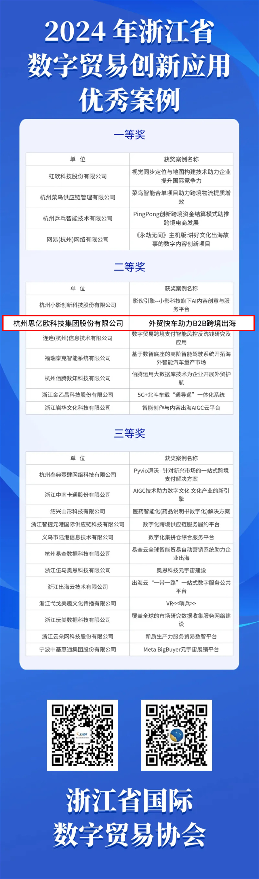 《外贸快车助力B2B跨境出海》荣获2024年浙江省数字贸易创新应用优秀案例二等奖